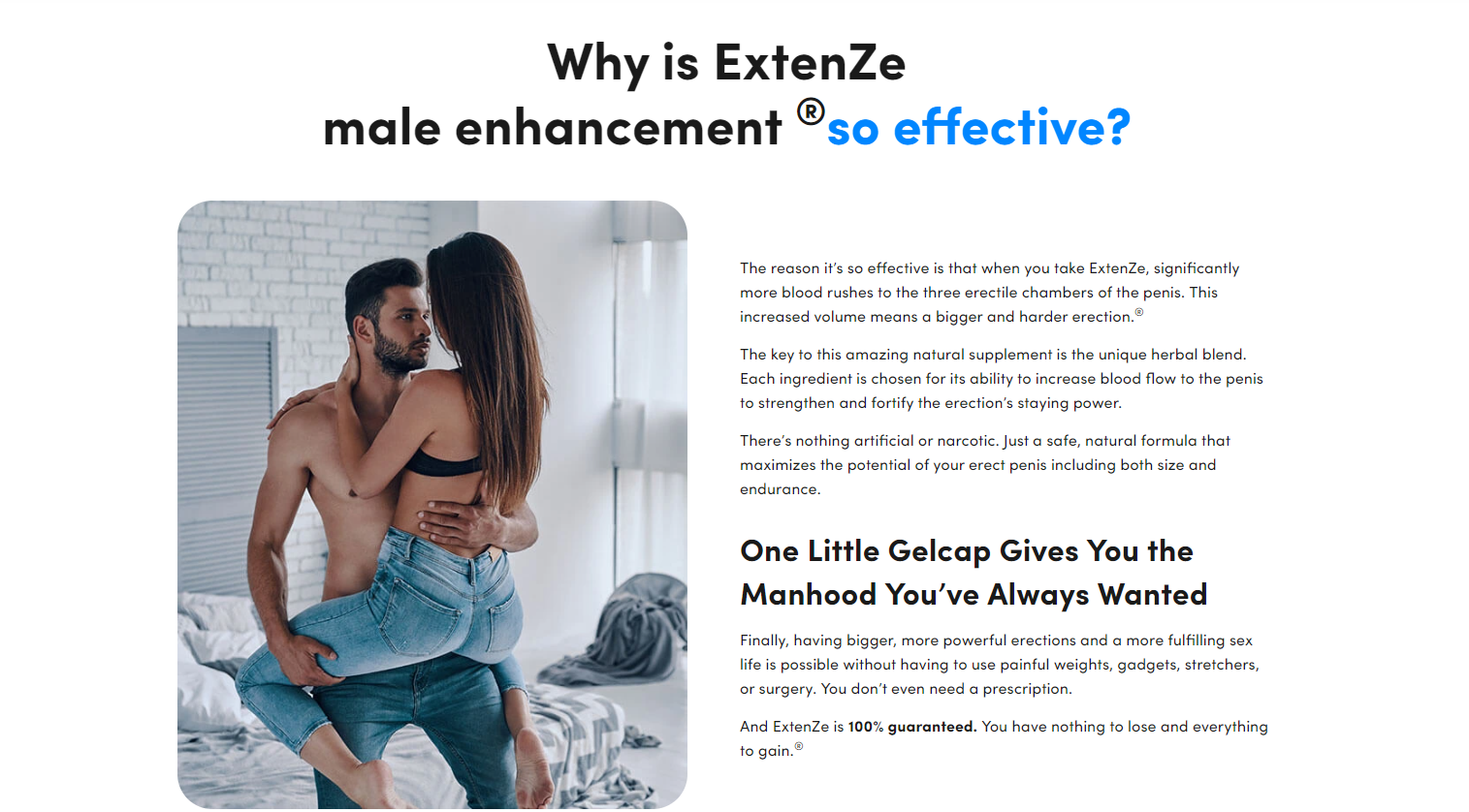 My experience with the ExtenZe product has been nothing short of amazing. As an aging adult, I clearly saw (and felt) the decline in testosterone. But I was completely opposed to taking any supplement that was not organic in nature. So testosterone boosters (and I researched them) were not something I felt comfortable ingesting. Then my research led me to the ExtenZe product. While my quest for enhancement was more specific to boosting my energy level and overall mood – as I had no deficiencies related to ED, ExtenZe still provided noticeable benefits and enhancements relative to intimacy as well! This is a great product. I even had the ingredients reviewed by my primary physician (for health and safety verification) and he gave a resounding Thumbs up!